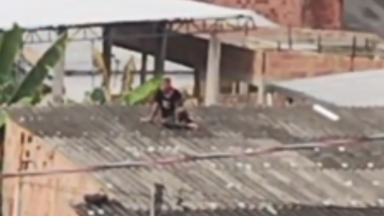 Nas imagens, ele aparece no telhado gritando: “Minha perna tá quebrada. “Polícia, polícia, polícia, por favor”, com medo de ser morto pelo tribunal do crime.