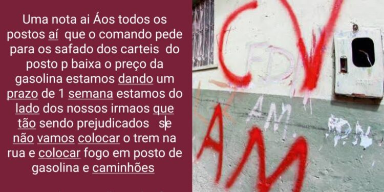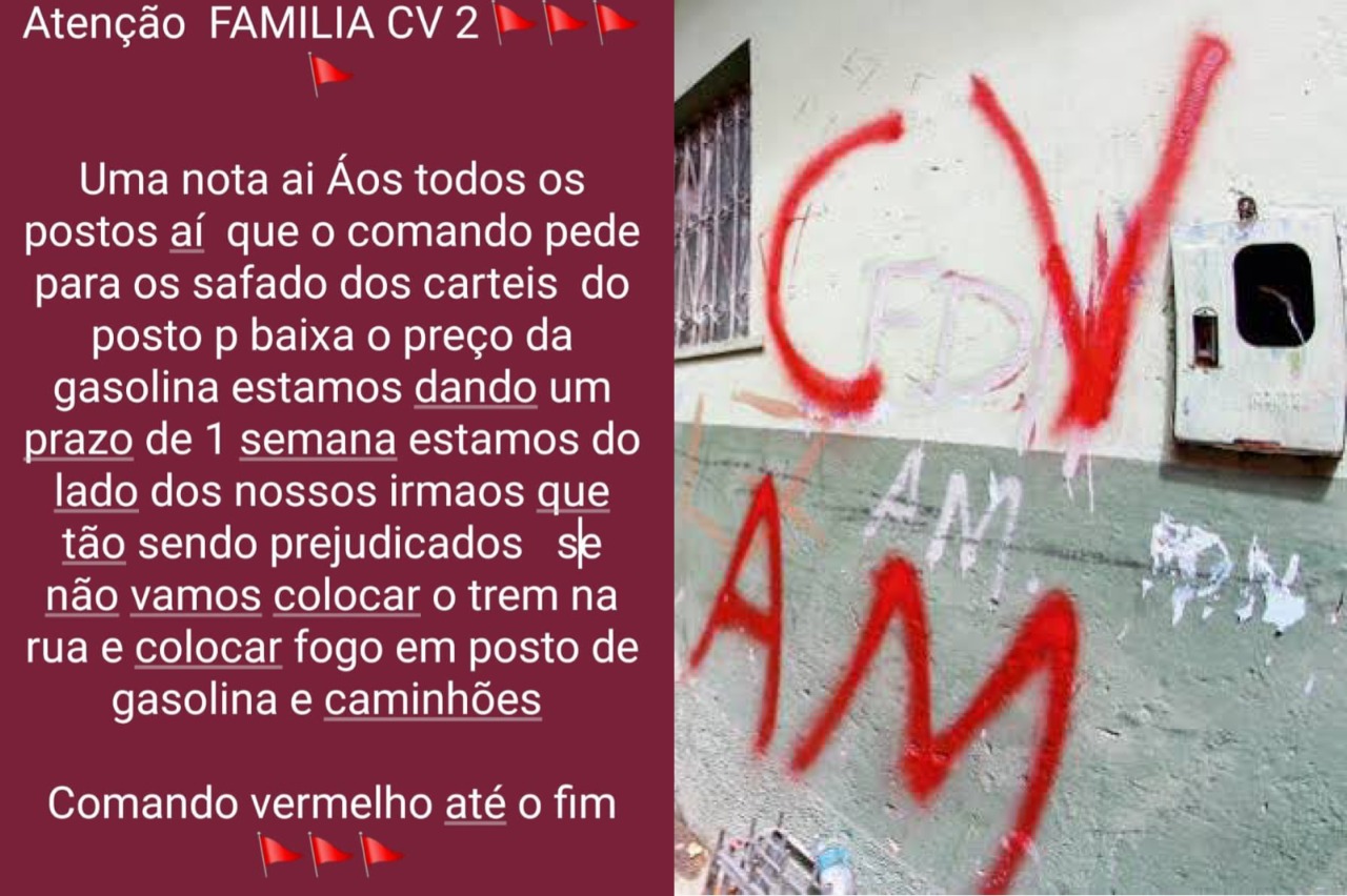 De acordo com a facção, se os proprietários de postos não obedeceram a ordem no prazo de uma semana, o CV vai “colocar o trem na rua e colocar fogo em postos e em caminhões”.