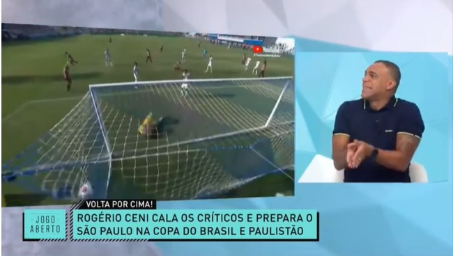 Durante um dos blocos do programa, o ex-jogador e apresentador Denilson afirma que se o São Paulo empatar no Morumbi, estádio do tricolor paulista, será um vexame.