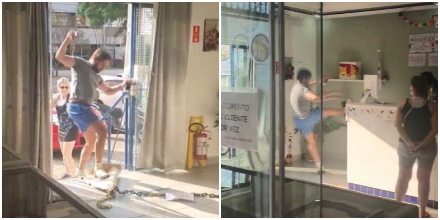 Antes de sair da sorveteria, ele ainda chutou um objeto da loja e pisou em um cone que estava na porta. A mulher informou que vai registrar um boletim de ocorrência.