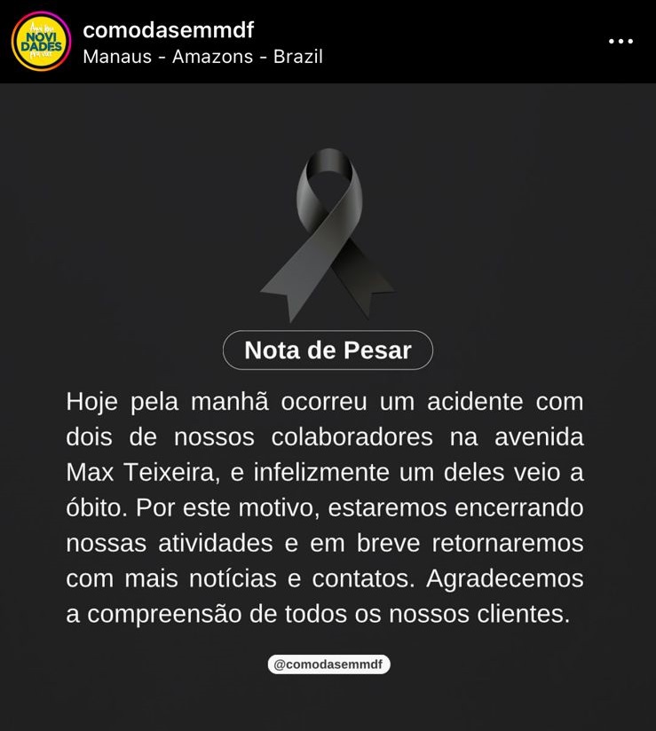A empresa que ele trabalhava emitiu nota de pesar e fechou as portas. José Rodrigues, que vinha na garupa, foi socorrido com vida. O condutor do Versa disse aos policiais que “estava com pressa”, perdeu o controle do carro, subiu o canteiro e causou o acidente. Ele quebrou as duas penas e foi identificado como Eric Juano. As pessoas do FOX tiveram ferimentos leves.