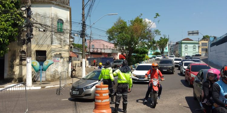 MANAUS (AM) – Agentes de trânsito da Prefeitura de Manaus, por meio da coordenação do Instituto Municipal de Mobilidade Urbana (IMMU), estão com efetivo desde o último dia 30/8 na área central da cidade, realizando o monitoramento das vias que farão parte do circuito de itinerário para a realização do “#SouManaus Passo a Paço” nos dias 5, 6 e 7/9.