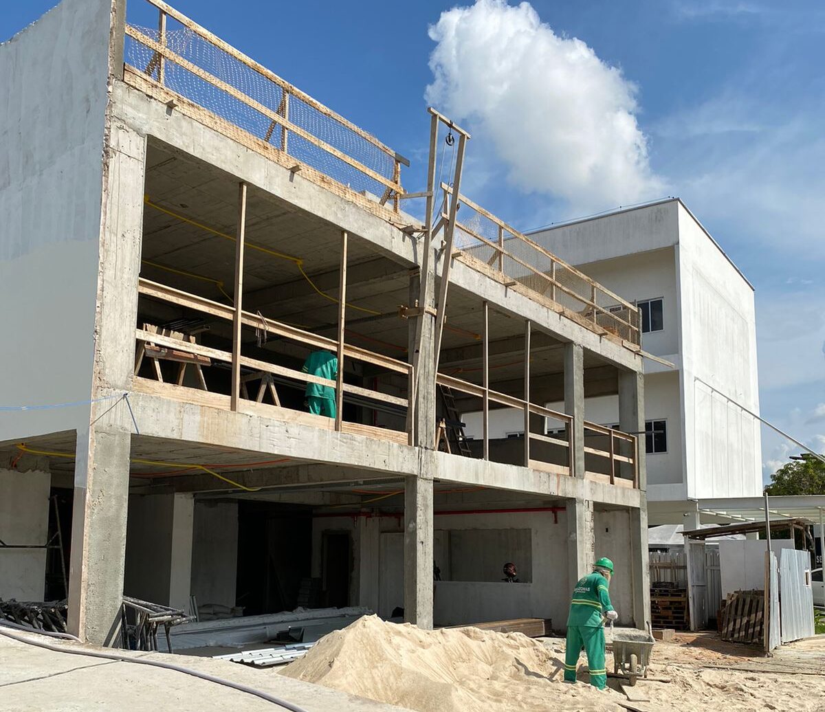 Já foram concluídos os serviços de construção da infraestrutura e da superestrutura do prédio, construção das vigas, pilares e colunas, além da alvenaria e instalações sanitárias.