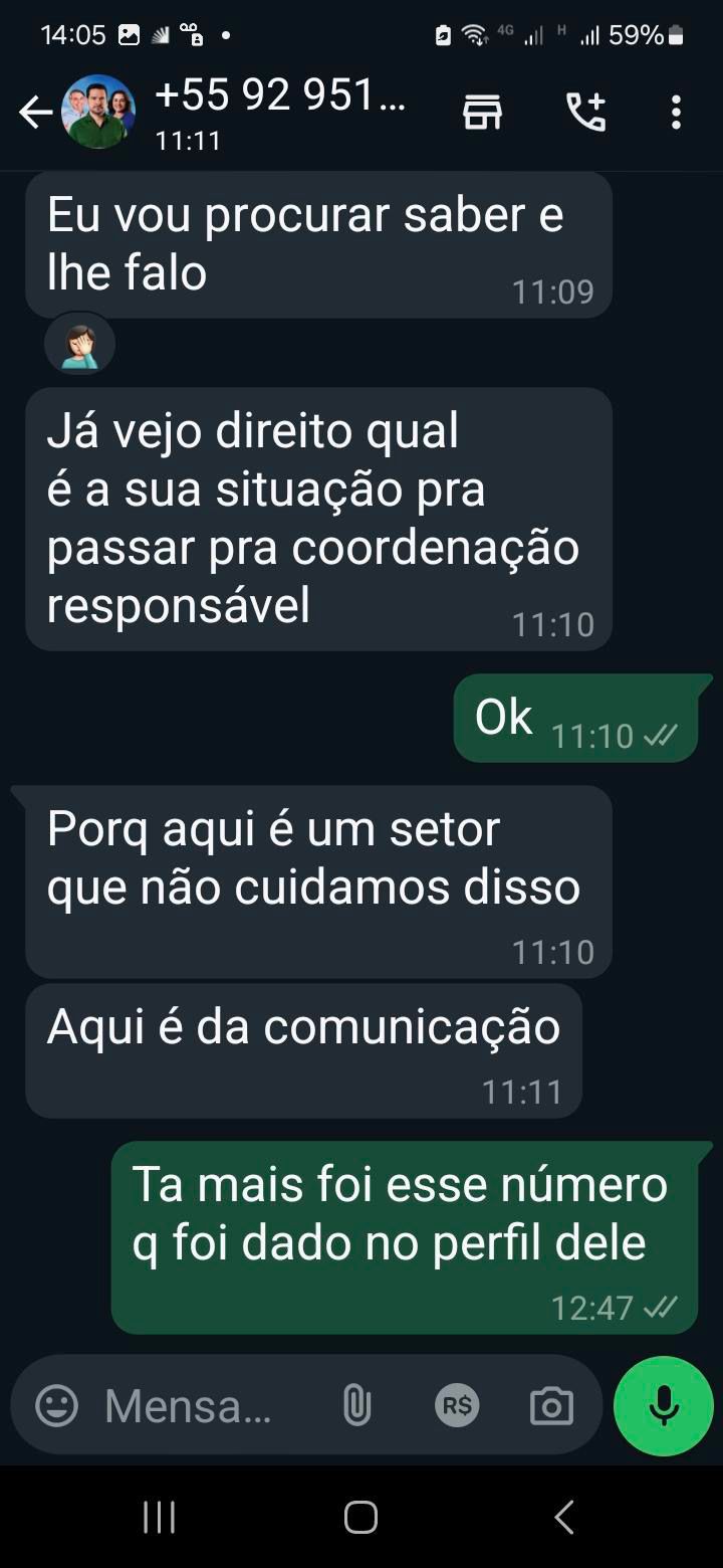 Em conversa com um número disponibilizado no perfil de Alberto, após fazer a denúncias nos comentários de uma publicação da conta do Instagram dele, a denunciante questiona sobre o pagamento e recebe a seguinte resposta: