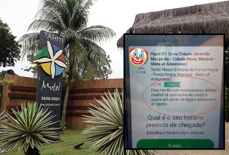 MANAUS (AM) – Um “corno apressado”, que não teve a identidade revelada, viralizou nas redes sociais, na noite desta quarta-feira (27), ao solicitar uma corrida para o Tahiti Motel, no bairro Ponta Negra, Zona Oeste, para supostamente flagrar a esposa com o “Ricardão”.