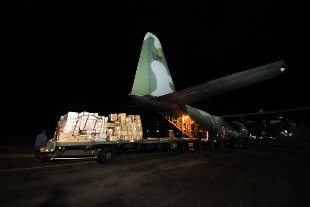 Os produtos foram trazidos em dois aviões da Força Área Brasileira (FAB) e totalizam mais de 387 mil volumes contendo: máscaras cirúrgicas, máscaras N95, luvas, óculos de proteção, aventais e álcool em gel.