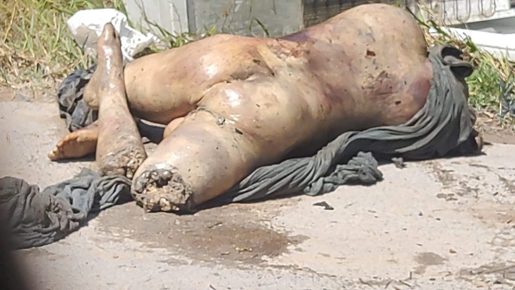 A vítima possuía uma corda enrolada no pescoço e sinais de tortura. Segundo a perícia, o homem levou um tiro, é branco, alto e não possui tatuagens. Há a suspeita que os assassinos tentaram esquartejar os membros do homem, cuja uma perna foi decepada e a outra estava pendurada.