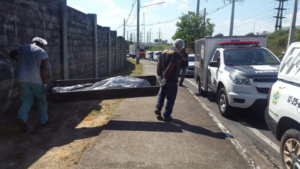 O corpo estava jogado em uma área de barranco, distante cerca de 100 metros da via. A mulher, que estava vestida com uma calça jeans azul e um sutiã, apresentava ainda hematomas no pescoço.