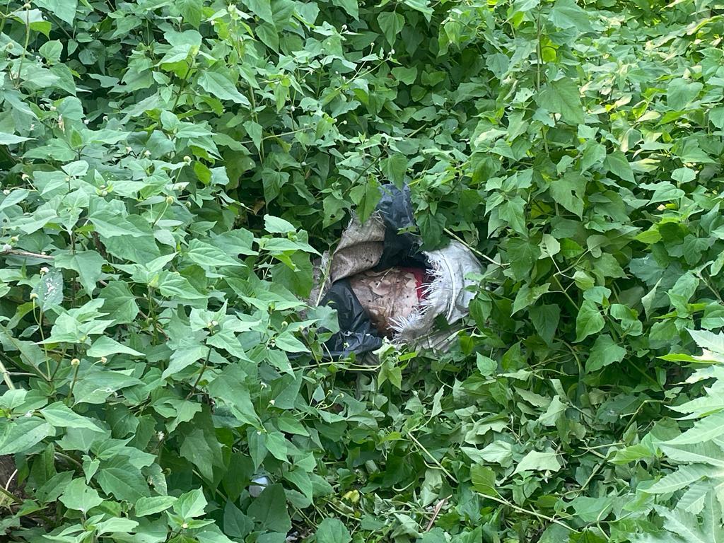 A vítima estava dentro de uma saca; ela não foi identificada, mas estava trajando calça comprida jeans de lavagem azul e uma blusa vermelha.