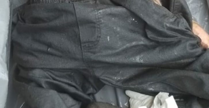 O cadáver ainda estava com a bermuda preta, mas já apresentava várias partes apenas em ossada, sem pele, dentro de um saco plástico.