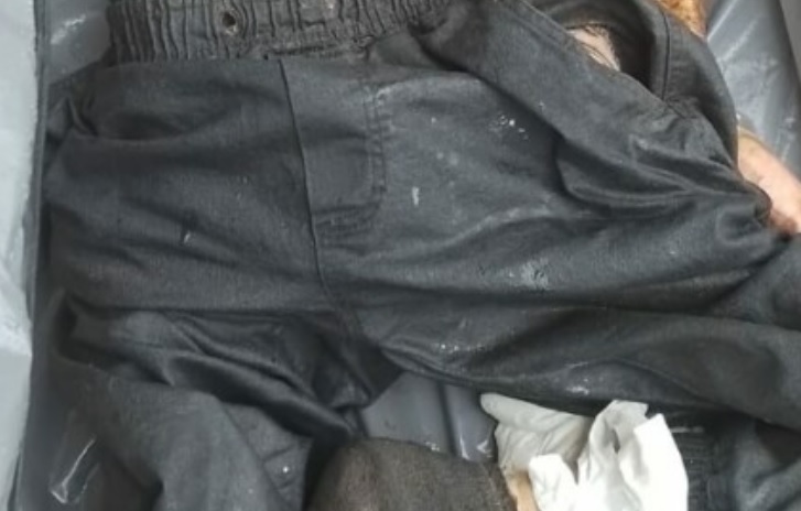 O cadáver ainda estava com a bermuda preta, mas já apresentava várias partes apenas em ossada, sem pele, dentro de um saco plástico.
