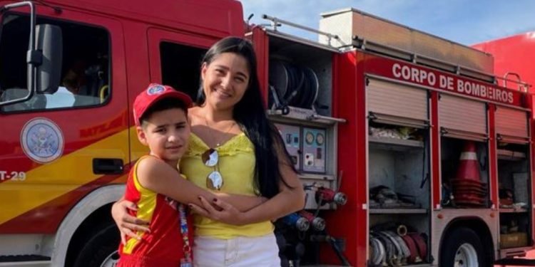 MANAUS – Com alegria de acompanhar o desenvolvimento do filho, Jacqueline Salins Gomes, 33, comemora os benefícios que o Programa Educacional Bombeiro Mirim (Proebom) têm proporcionado para Rodrigo Salins Gomes de Oliveira, 9, uma criança com espectro autista. Ele ingressou, neste ano, como aluno do programa na turma do Batalhão de Bombeiro Especial (BBE).