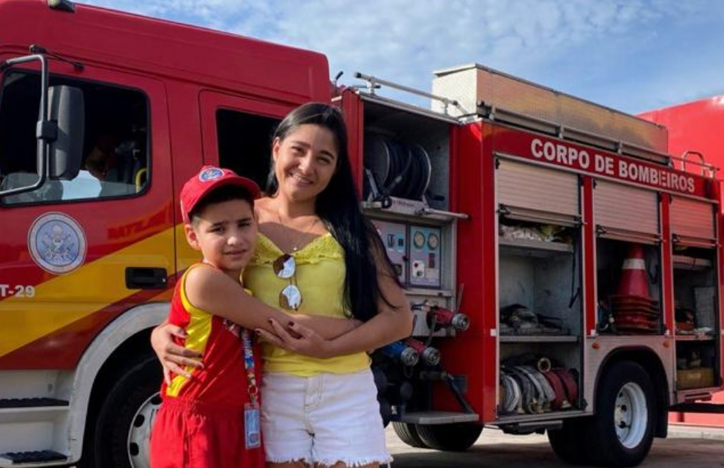 MANAUS – Com alegria de acompanhar o desenvolvimento do filho, Jacqueline Salins Gomes, 33, comemora os benefícios que o Programa Educacional Bombeiro Mirim (Proebom) têm proporcionado para Rodrigo Salins Gomes de Oliveira, 9, uma criança com espectro autista. Ele ingressou, neste ano, como aluno do programa na turma do Batalhão de Bombeiro Especial (BBE).