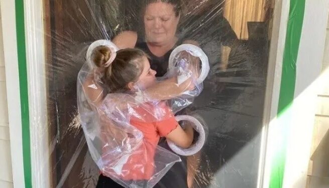 EUA| Com a crise do novo coronavírus, o mundo está passando pelo o isolamento social para evitar o contágio do vírus. Na Califórnia, Paige Okray de 10 anos, fez uma invenção para poder abraçar avós em tempos de pandemia. Com os idosos sendo do grupo de risco, a criança inventou a cortina de plastico com braços para poder abraçar os avós.