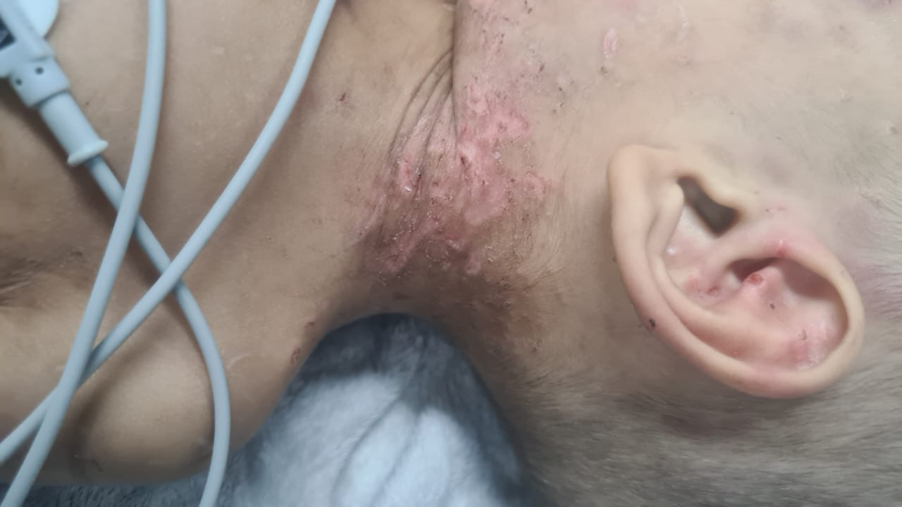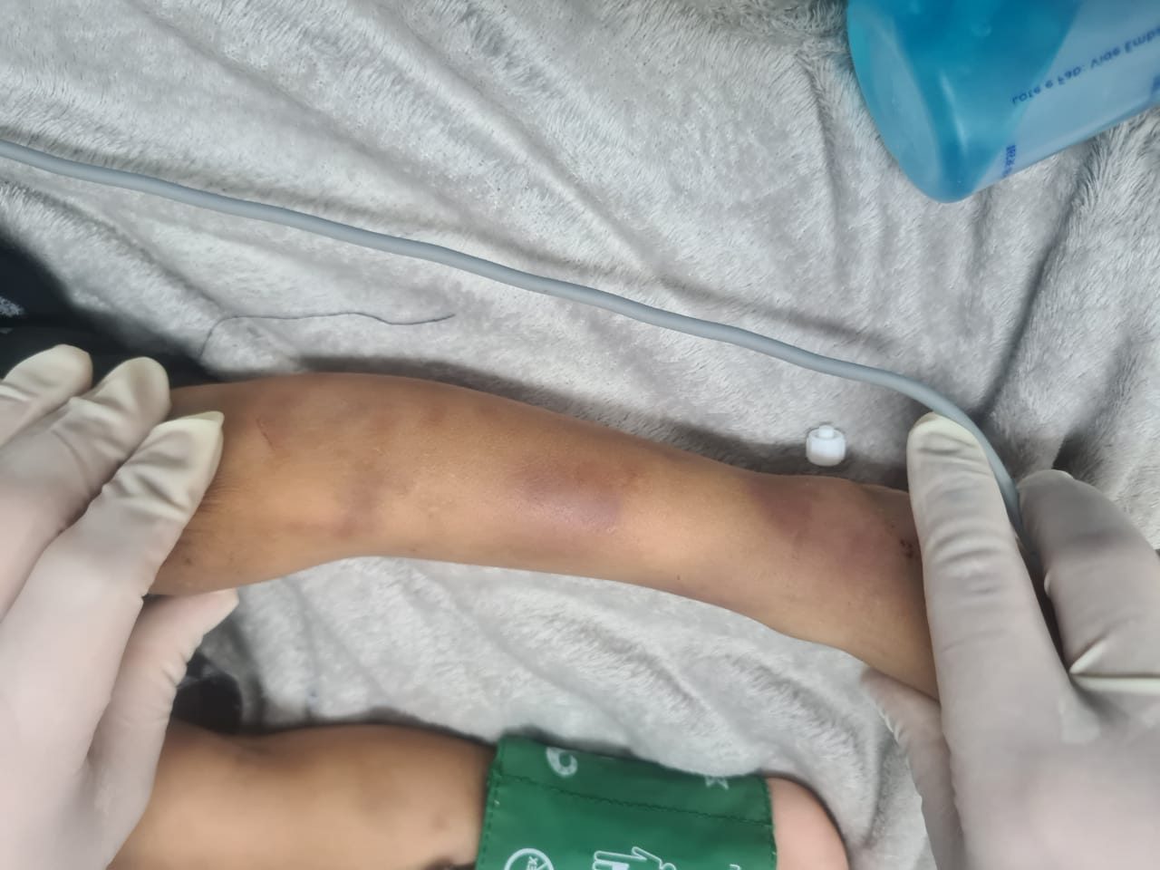 Ao chegar ao local os policiais encontraram a vítima cheia de hematomas espalhados pelo corpo, lesão na cabeça; além disso a criança aparentava estar desnutrida, tinha marcas recentes e também antigas de feridas em todo o corpinho.