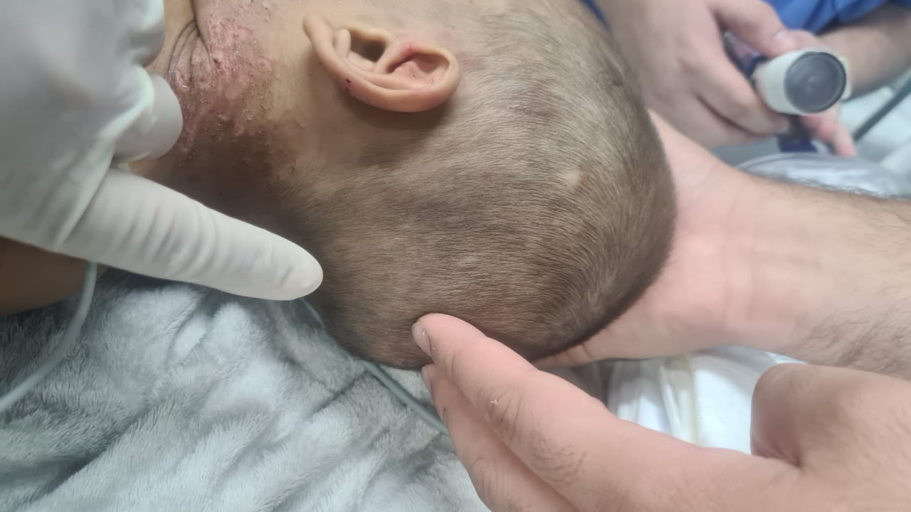 Agora a equipe médica luta para estabilizar a vítima, que precisa ser transferida para o hospital da criança.​