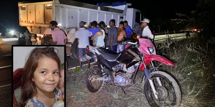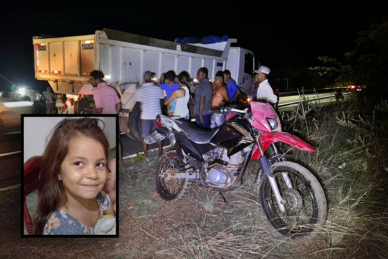 PAÍS – Nídia Giulia de Sousa Portela, uma criança de apenas 8 anos, perdeu a vida, e sua mãe, Larissa Giulia da Silva de Sousa, de 35 anos, ficou ferida em um acidente envolvendo a moto em que estavam e um caminhão caçamba. O trágico incidente ocorreu na noite de segunda-feira (15/01) por volta das 08h30, no KM-86 da BR-343, na região rural de Caraúbas do Piauí, próximo à Vila Volta da Jurema, no norte do estado.