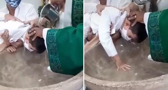 BAHIA | Imagens de um batizado realizado no último domingo (25), viralizou nas redes sociais, após o pequeno Davi reagir espontaneamente ao evento.