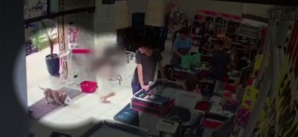 As imagens mostram a menina correndo para dentro do supermercado e o cachorro entrando logo atrás dela. Enquanto alguns funcionários socorrem a menina, seguranças batem no animal para tentar tirar o pit-bull do local.