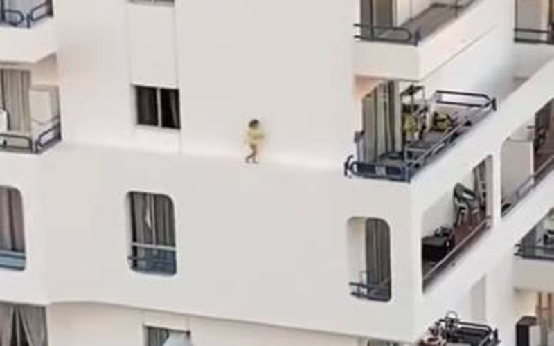 Espanha – As imagens impressionam, no vídeo é possível ver que a menina, ao sair pela janela, caminha em direção à varanda. Quando não consegue passar pela grade, resolve retornar e percorre o parapeito novamente. Em alguns momentos, a criança chega a correr.