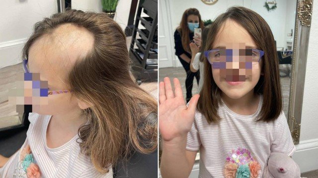 A solução foi cortar o cabelo da menina e usá-lo para fazer extensões capilares a fim de esconder a parte descoberta.