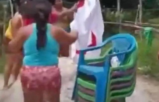 A ação é interrompida com a chegada de vizinhos, do conselho Tutelar e da polícia. Veja;