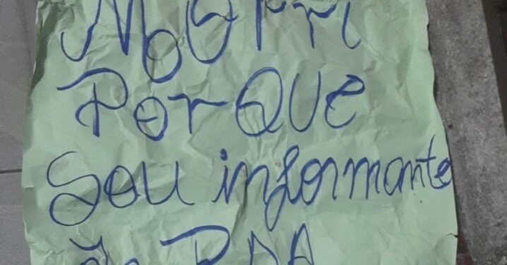 No local do crime, a polícia encontrou um bilhete dizendo “Morri porque sou informante do RDA”.