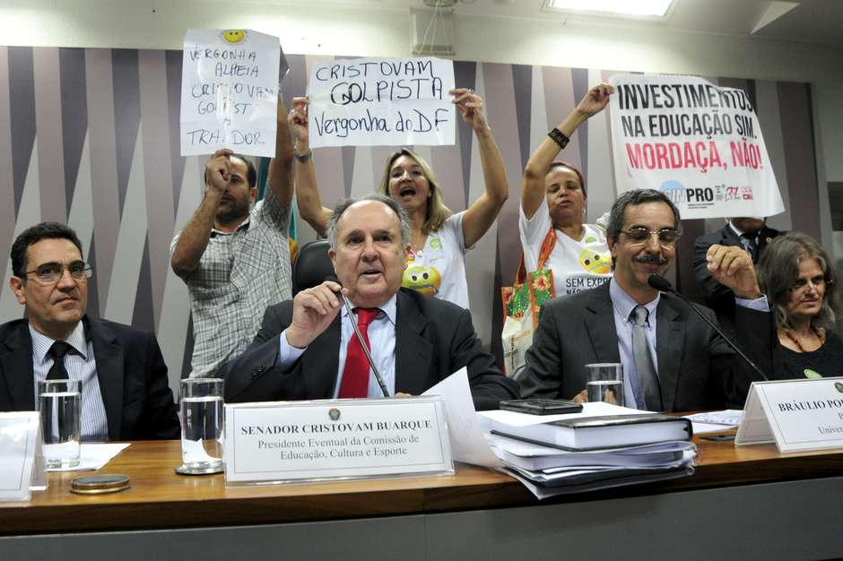 Cristovam Buarque, então, pediu respeito à fala do professor. “Senão vocês estão sendo iguaizinhos aos que querem ‘Escola sem Partido’. Querem só com o partido de vocês”, afirmou o senador.