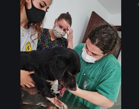 PARANÁ | Uma cadelinha teve parte da boca destruída após ter contato com fogos de artifício na madrugada de hoje em Piraquara, região metropolitana de Curitiba. A suspeita é que um rojão tenha sido amarrado ao corpo do animal, conforme informado pelo delegado Matheus Laiola, responsável pela investigação.