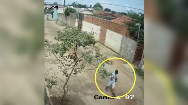 Após subir na moto, o ladrão sumiu. Ao olharem câmeras de segurança de uma escola da região, a família viu que o golpista escondeu o capacete em uma lixeira e, ao pegar a moto, passou pelo local, pegou o item e foi embora.
