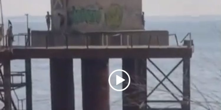 MANAUS (AM) – Jovens que ainda não foram identificados, foram gravados pulando da estrutura que fica sob a Ponte do Rio Negro, em Manaus, nas águas em meio à seca.