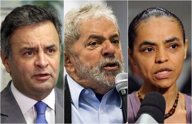 Em um eventual primeiro turno em que Aécio é testado como candidato do PSDB, Lula aparece com 22%, Marina com 17% e o tucano com 14%.
