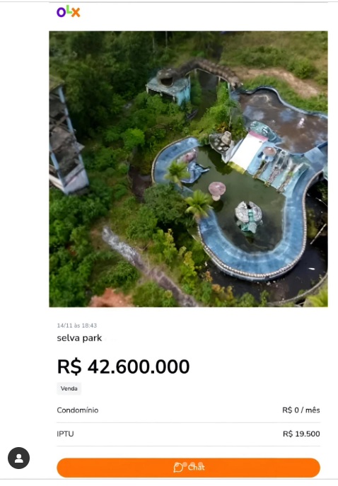 MANAUS – Internautas compartilharam na rede social nesta terça-feira (11), o anúncio da venda do Selva Park, em Manaus, um dia após o prefeito David Almeida anunciar que vai construir um viaduto no local. O valor de mais de R$ 42 milhões levantou questionamentos sobre quanto o contribuinte vai pagar pela nova obra.