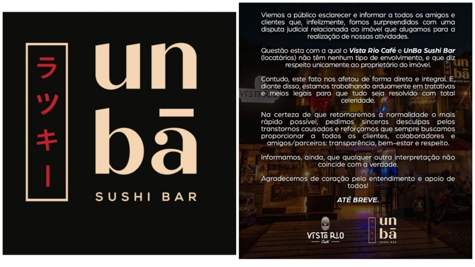 MANAUS – AM | Na noite desta quinta-feira (28), o UnBa Sushi Bar, localizado na avenida Coronel Teixeira, bairro Ponta Negra, zona Oeste de Manaus, emitiu um comunicado em suas redes sociais informando sobre o fechamento do estabelecimento após uma decisão da Justiça.