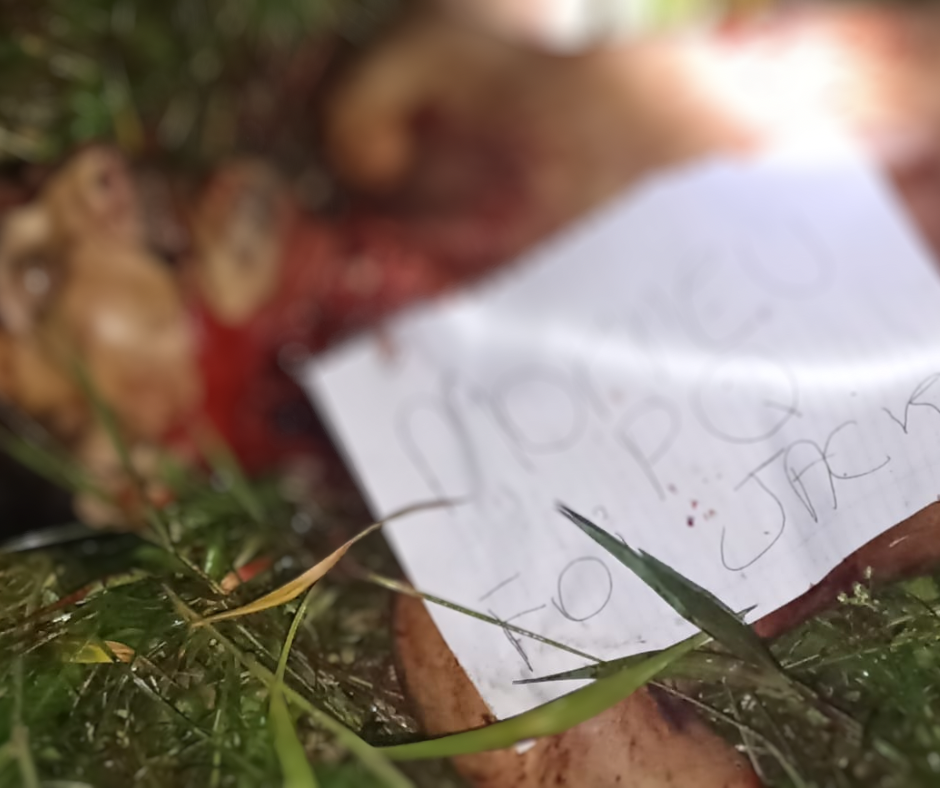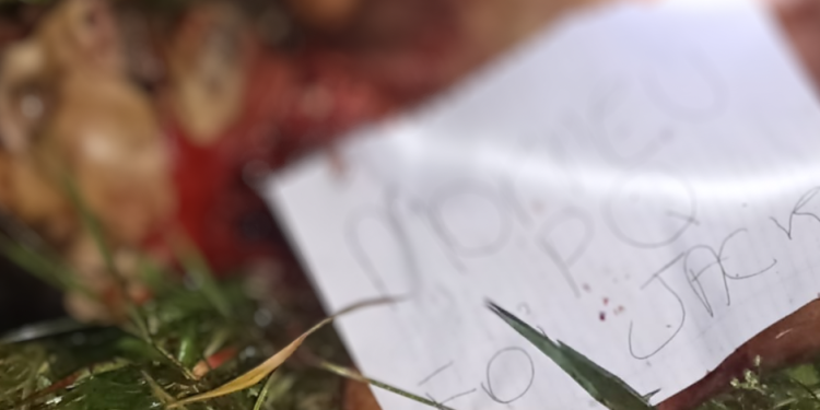 De acordo com a polícia, o cadáver estava com um corte profundo da garganta e um bilhete ao lado que dizia: “Morreu pq foi Jack”, apelido dado por facções a quem comete crime de estupro.