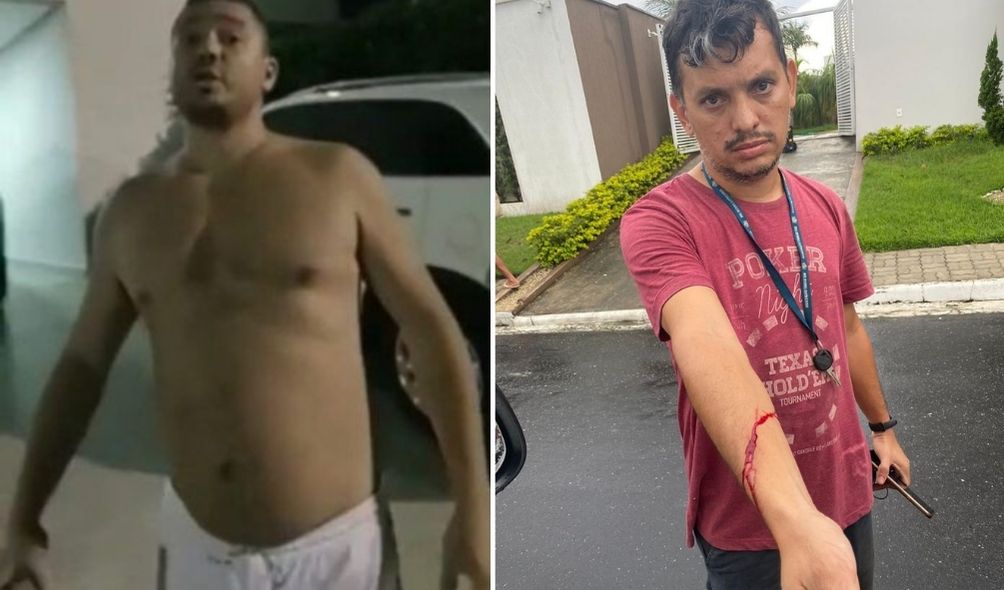 “Fui retirar a maquina [de lavar] dele, aí ele foi lá me ajudar. Depois ele tirou uma faca das costas dele tacou no meu braço”, disse a vítima.