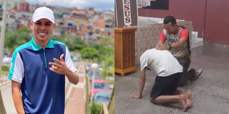 na madrugada desta quarta-feira (15), o jovem surpreendeu seguidores ao publicar uma foto ajoelhado, recebendo uma oração numa igreja.