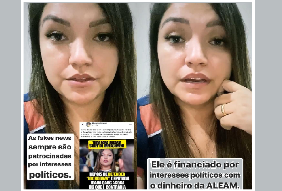 MANAUS – AM | Na tarde desta quinta-feira (07), a deputada Joana D’arc (PL) compartilhou em seu Instagram uma série de denúncias contra o autor das fakes news relacionadas e ela e outros deputados, envolvendo o Lockdown que seria aplicado na cidade de Manaus. O suspeito foi identificado como Christian Moraes.