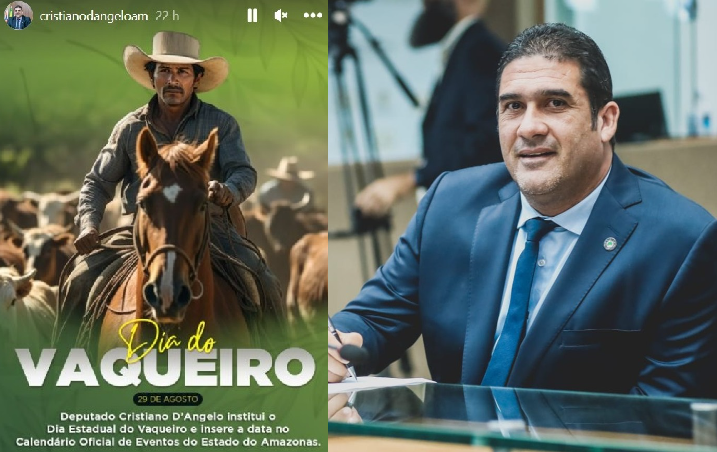 MANAUS (AM) – Eleito com 36 mil votos, o deputado estadual Cristiano D’Angelo (MDB) comemorou nesta quarta-feira (30), nas redes sociais, a aprovação do Dia do Vaqueiro, que passa a ser comemorado em agosto no Amazonas. É dele também a ideia do Dia das Leguminosas, que passa a ser comemorado em fevereiro e foi aprovado na na Assembleia Legislativa do Estado do Amazonas (ALEAM).