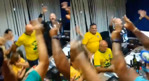 O problema é que o senador Omar Aziz ultrapassou ele nos votos e acabou se reelegendo. As imagens mostram o coronel e aliados comemorando, gritando e com os braços levantados.