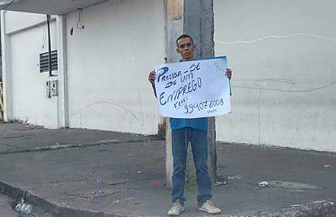 7.971 foi a quantidade vezes que a foto de Pyerk Lima segurando o cartaz “precisa-se de um emprego” foi compartilhada nas redes sociais até as 17h de ontem.