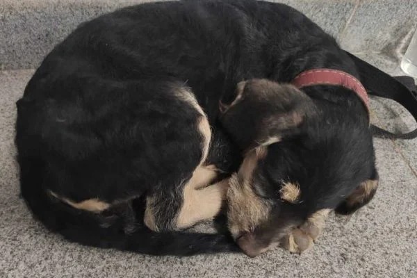 O cão estava debilitado, mas, com ajuda de populares, recebeu água e ração. Após se alimentar, o filhote mudou de comportamento e começou a interagir com os policiais.