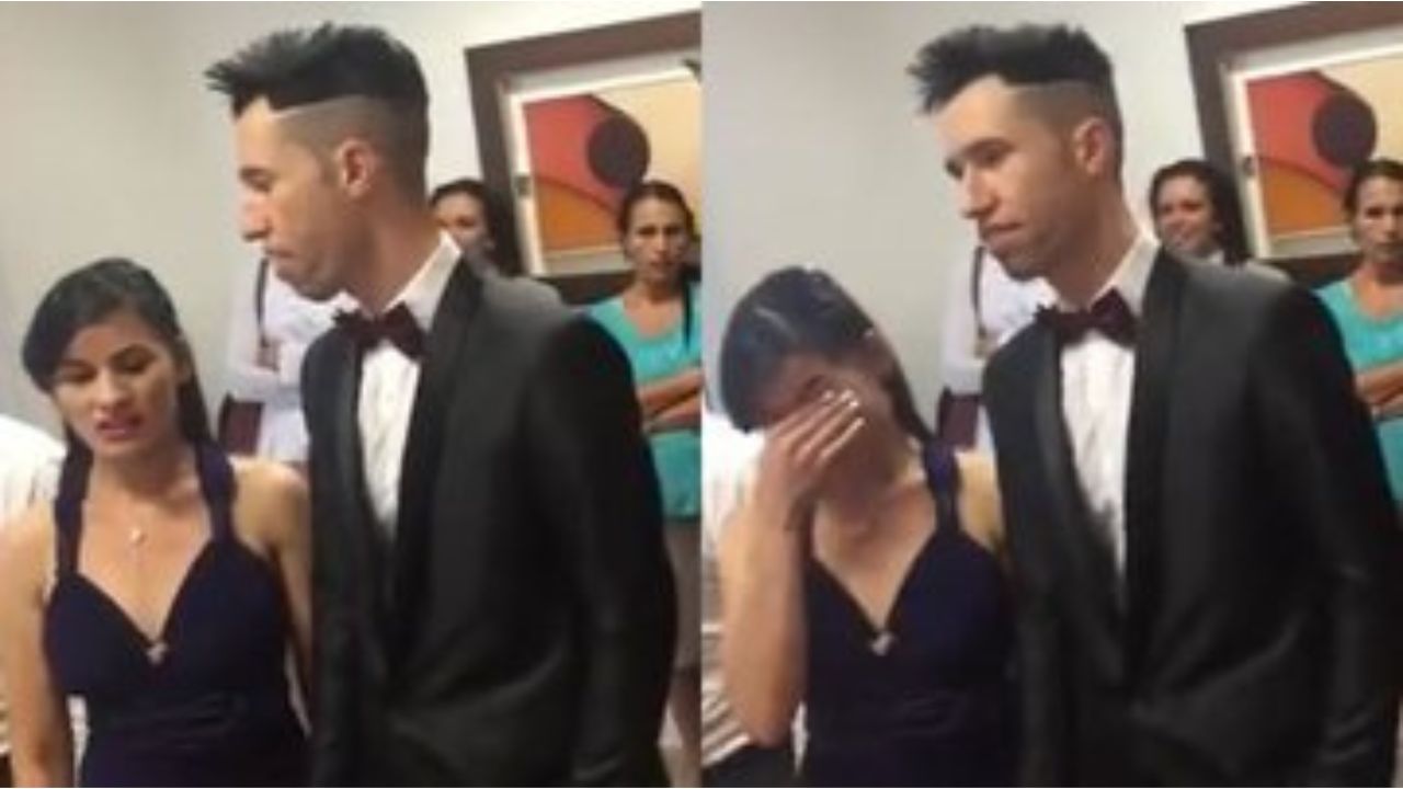 No vídeo divulgado pelo próprio noivo, o auxiliar de serviços gerais, Vanildo Vieira, 38, concorda em aceitar a esposa por livre e espontânea vontade, mas a noiva, Miriam Ferraz Gomes, 39, diz “não”, em seguida rindo ela explica que estava brincando.