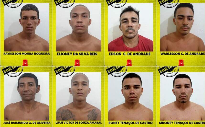 A polícia, no entanto, ainda procura oito detentos que estão foragidos. São eles: Sidoney Tenaçol de Castro, Roney Tenaçol de Castro, Warlesson Castro de Andrade, Luan Victor de Souza Amaral, Elioney da Silva Reis, Edson Castro de Andrade, Raykesson de Moura Nogueira, Jose Raimundo Gomes de Oliveira.