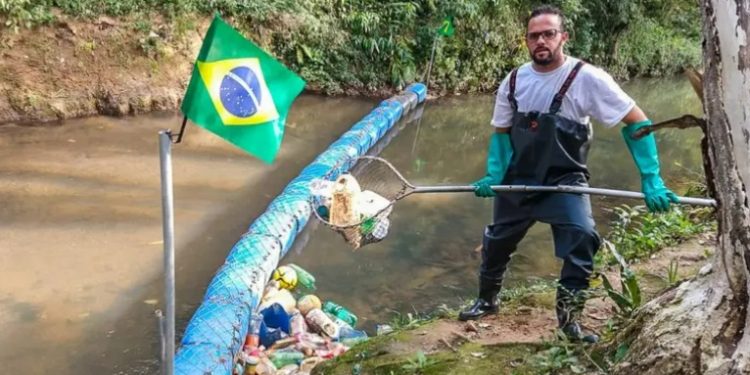 Em janeiro de 2017, ele reuniu garrafas pet de dois litros em uma rede e esticou a barreira flutuante de uma margem do rio à outra. A partir de então, surgiu a “ecobarreira”, como o vendedor define o objeto que segura o lixo carregado pela correnteza.