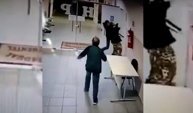 A câmera de segurança da instituição registrou o momento da agressão. O desentendimento começou, segundo relataram testemunhas, quando a docente pediu ao aluno que entrasse na sala de aula