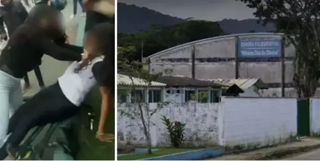Conforme vídeo, duas adolescentes aparecem brigando. Uma delas chega a apertar o pescoço da outra, a esganando. Elas ainda trocam socos e chutes. Estudantes também tentar acabar a briga, mas não conseguem.