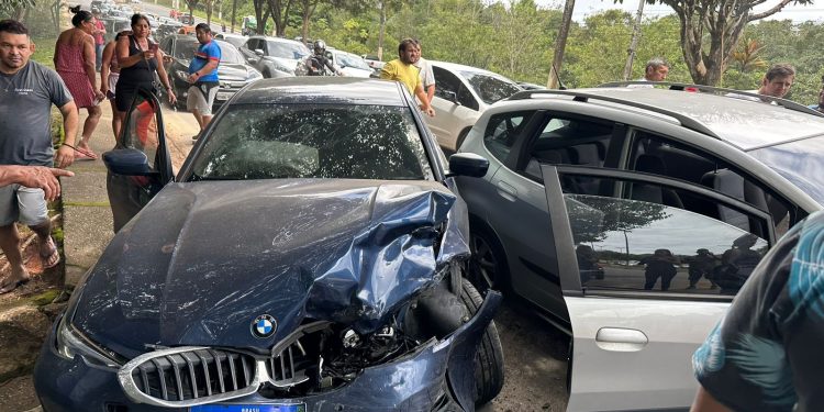 MANAUS (AM) – Um homem ferido após um acidente entre seis carro e um caminhão na tarde deste sábado (4), na avenida do Turismo, zona Oeste de Manaus.