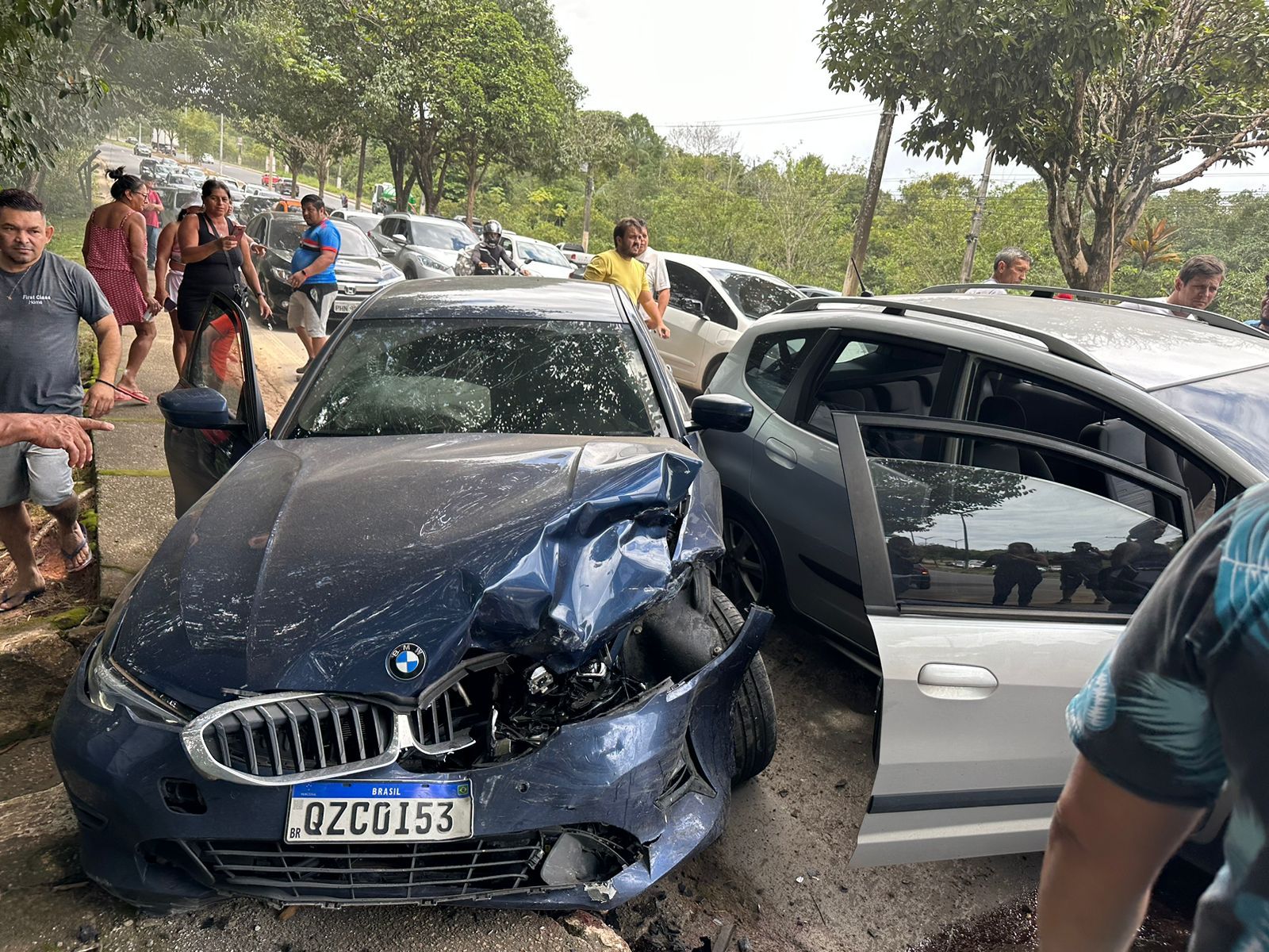MANAUS (AM) – Um homem ferido após um acidente entre seis carro e um caminhão na tarde deste sábado (4), na avenida do Turismo, zona Oeste de Manaus.