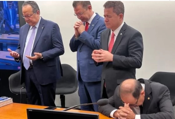 Nesta quintal a foto dele e dos colegas evangélicos orando no Congresso foi divulgada pela Frente Parlamentar Evangélica, da qual o deputado faz parte e agora vai liderar.